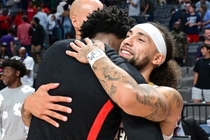 在本场比赛中,阿门-汤普森和阿尔瓦拉多因为卡位问题爆发了冲突,不过,他们两人在赛后拥抱,握手言和。