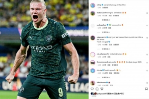 本场比赛哈兰德破门,这已经是他连续12场比赛取得进球。赛后哈兰德在社媒晒出庆祝照片,配文写道:“只不过又是普普通通上班的一天。”