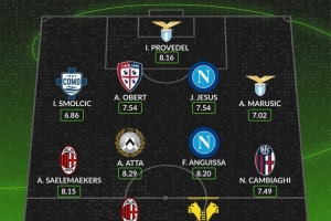 后卫:伊万-斯莫西奇(科莫,6.86分)、亚当-奥伯特(卡利亚里,7.54分)、胡安-热苏斯(那不勒斯,7.54分)、马鲁西奇(拉齐奥,7.02分)