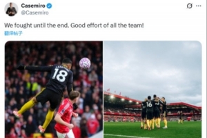 赛后,卡塞米罗在社交媒体晒出自己头球以及与队友庆祝的照片,并配文写道:“我们战斗到了最后,全队都付出了很棒的努力!”