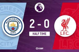 半场-曼城2-0利物浦 哈兰德头球破门+失点冈萨雷斯远射建功