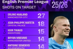体育资讯11月11日讯 英超联赛已经进行了11轮,squakwa也统计了本赛季英超射正次数,哈兰德断崖领跑。